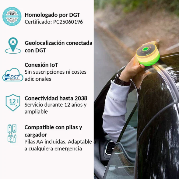 30 reviews for Baliza V16 Homologada DGT con Geolocalización IoT Luz Emergencia Coche Visible 1 km 360° Datos Pagados hasta 2038 Sustituto Oficial Triángulos IP54 Resistente Agua y Polvo 70 candelas