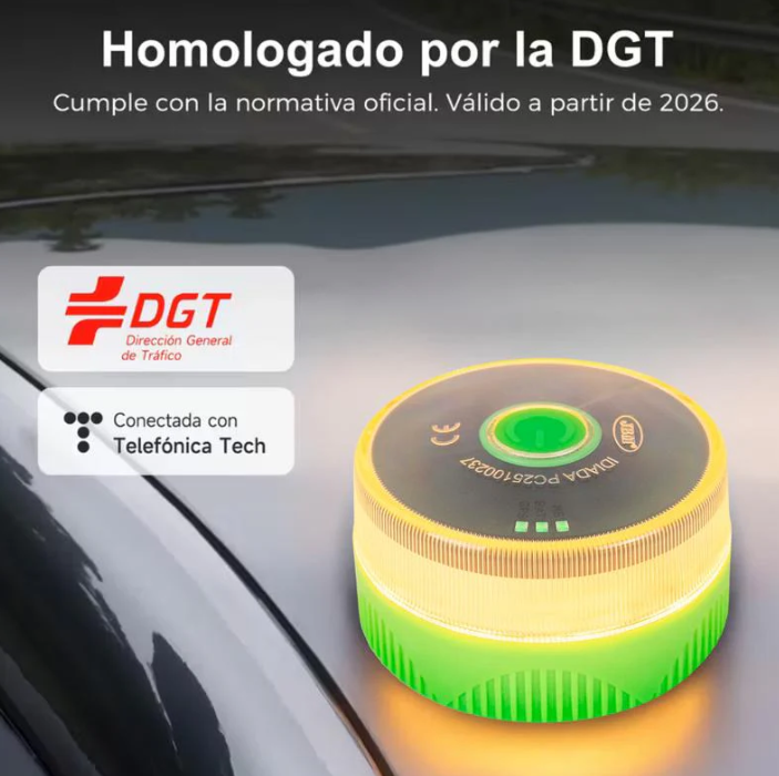 Baliza V16 Homologada DGT con Geolocalización IoT Luz Emergencia Coche Visible 1 km 360° Datos Pagados hasta 2038 Sustituto Oficial Triángulos IP54 Resistente Agua y Polvo 70 candelas