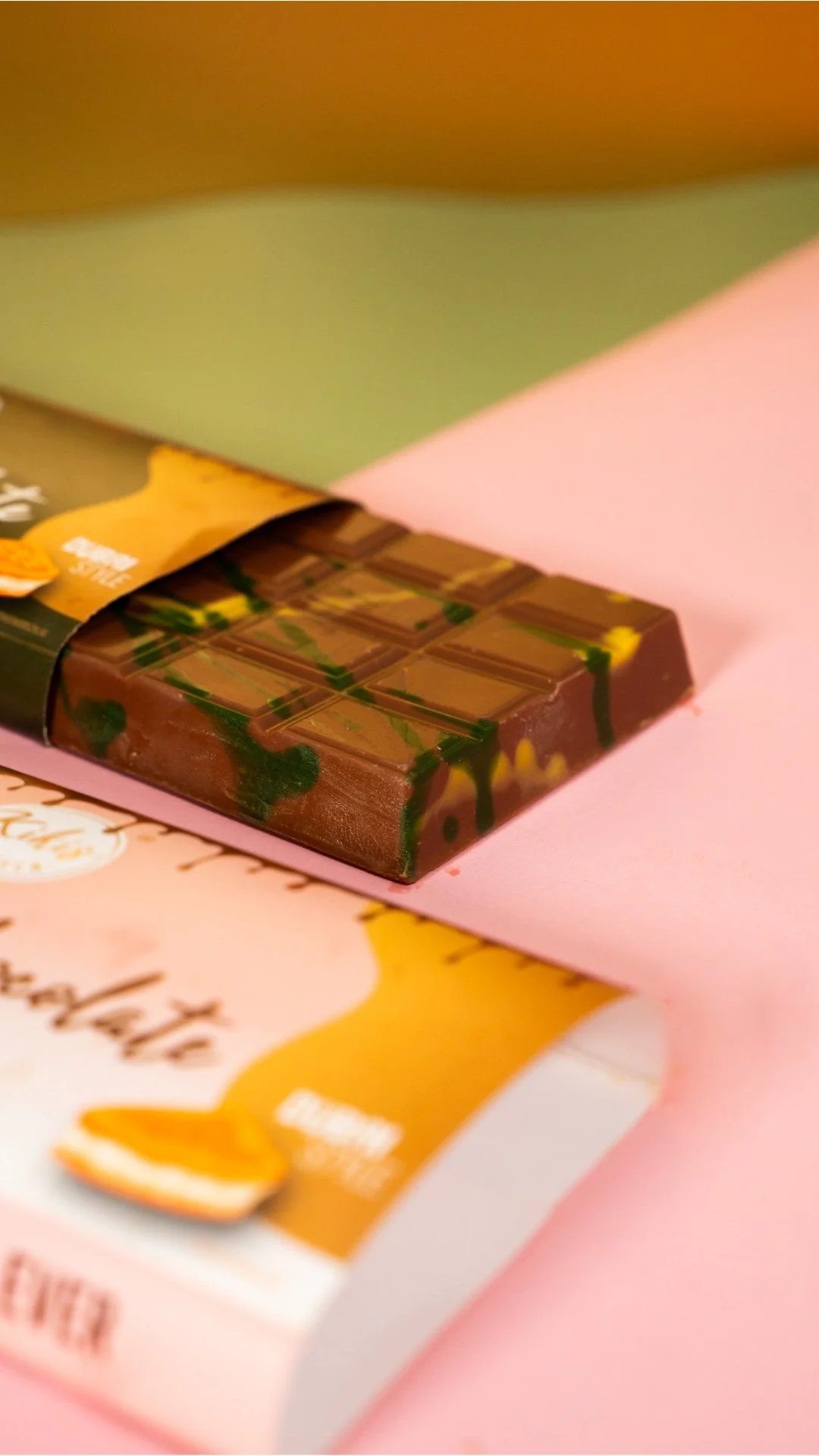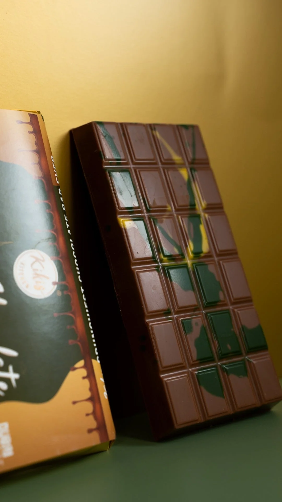 Jede Tafel von Kikis Dubai Style Chocolate ist mit ganzen Pistazien verziert ¨C optisch ansprechend und geschmacklich top, was mehr wollen?