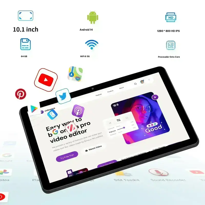 Descubre la tableta Android 14Ofreciendo una experienciadeusuariointeligenteyeficiente.Con rendimiento mejorado y mayor seguridad,está equipado con con Android 14. La certificación MSGgarantiza un acceso sin problemas a los servicios de Google para una experiencia perfecta e integrada. Perfecto para la escuelaylavidacotidiana,es un regalo ideal.