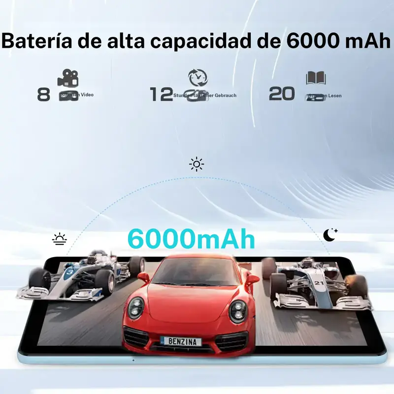 8 GB de RAM+ 64 GB de ROM Garantizar un rendimiento excepcional. El procesador Octa-Core garantiza un set, transmisión, navegación y reproducción fluidos.Con suficiente memoria para peliculas,materiales de aprendizaje y archivos importantes,esta tableta esta disenada para un uso intensivo.